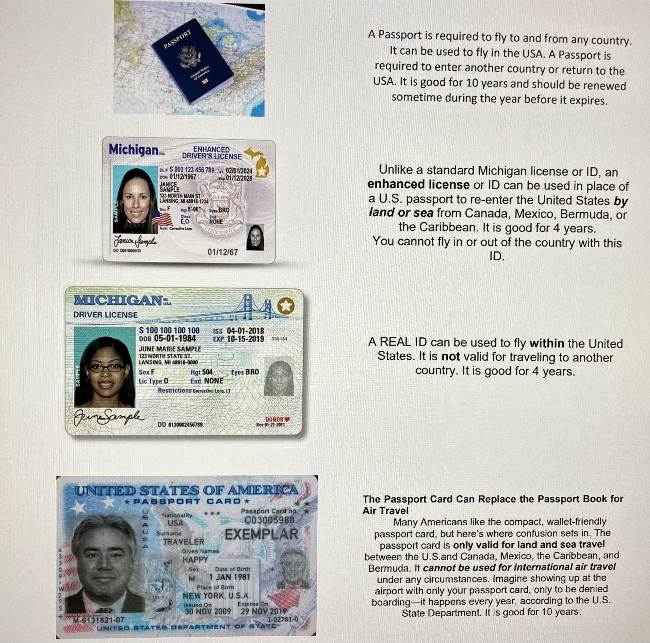2 Enhanced Michigan Driver’s License is already compliant and allows entry into the US by land or sea from Canada, Mexico, Bermuda or the Caribbean without a passport. The Enhanced Michigan Driver’s License has an American flag on the license just to the right of your picture. The newer ones also have a star in the upper right hand corner. It says “enhanced” at the top of the license.